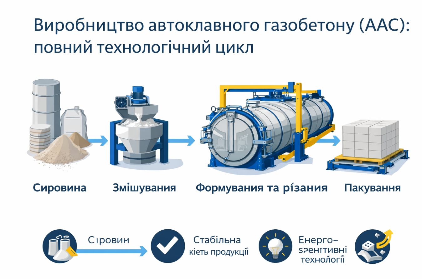 Сучасне виробництво автоклавного газобетону та силікатної цегли вимагає не лише якісного обладнання, а й системного підходу до запуску заводу. Саме тому AAC SYSTEMS пропонує реалізацію проектів “під ключ”, беручи на себе всі етапи створення виробничої лінії — від ідеї до стабільної роботи підприємства.